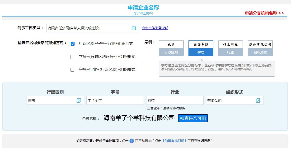 1、先申請(qǐng)企業(yè)名稱(chēng),確定羊了個(gè)羊這個(gè)字號(hào);