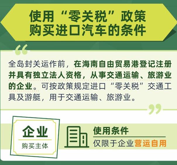 根據關于中國國際消費品博覽會展期內銷售的進口展品稅收優(yōu)惠政策的通知和海南自由貿易港零關稅進口交通工具及游艇管理辦法試行)的通知,符合從事交通運輸、旅游業(yè)的企業(yè)(航空企業(yè)須以海南自由貿易港為主營運基地,可按政策規(guī)定進口零關稅交通工具及游艇,用于交通運輸、旅游業(yè),對于這一類企業(yè)可以在消博會上免稅購買零關稅清單目錄上的汽車、游艇和飛機這些政策將于5月12日公布。